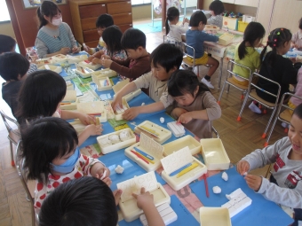 年中になって、初めてもらったマーカーペンや粘土を使って