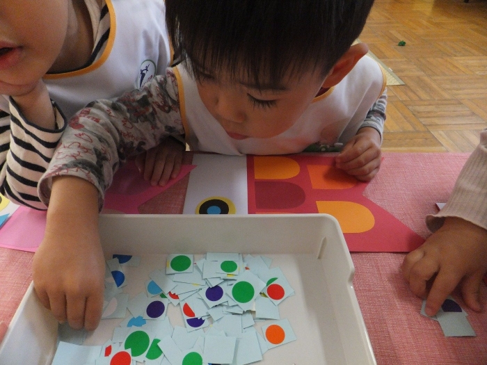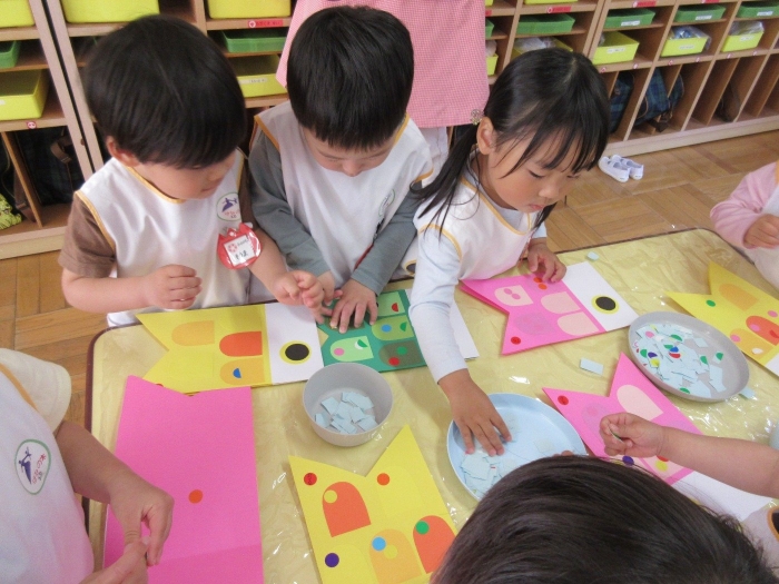好きな色のシールを貼って鱗に模様をつけるよ!