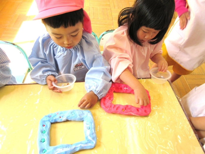 出来上がると、「早く渡したいな~♡」と粘土が乾くのを眺めていた子どもたち💓