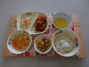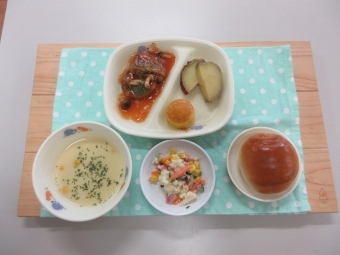 年少さんは初めてのロールパンに大興奮の様子で、コーンスープに付けたりして楽しんで