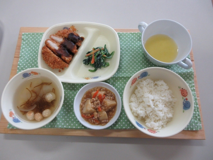 5月29日(月)~6月2日(金)の給食を紹介します!!月曜日には名物!味噌カツが登場しました。カツに甘い味噌だれをつけて、みんな美味しそうに食べていました😀ご飯のおかずにぴったりでした♡他にも子どもたちの大好きなカレーライスやデザートもたくさんあり、大満足な様子でした🍙