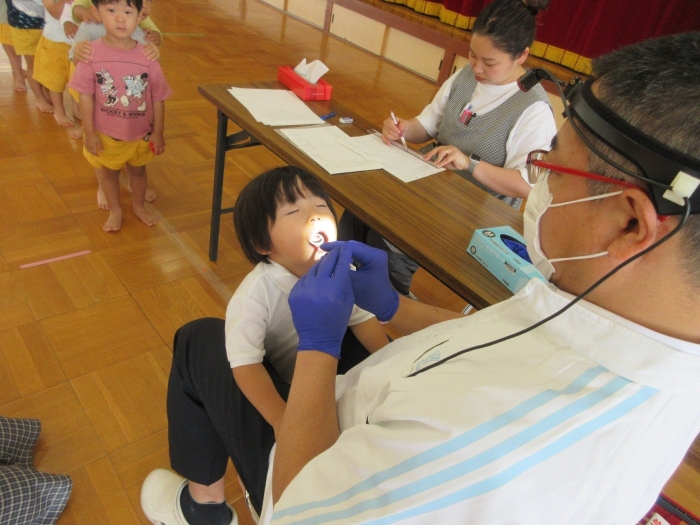 遊戯室で歯科検診を受けました。歯医者さんに「お願いします!」の挨拶をして、大きな口を開けて上手に診てもらうことができました。終わってからも静かに待つことができ、さすがはなの木っ子✨保育室に戻ってから「きれいだった~?」「虫歯なかったかな~?」と先生に聞いている姿も見られました。初めての歯科検診だった年少さんも、頑張って受けられました!お家でぜひ褒めてあげてくださいね!!検診結果は、後日用紙にて持ち帰りますので、またご確認ください。