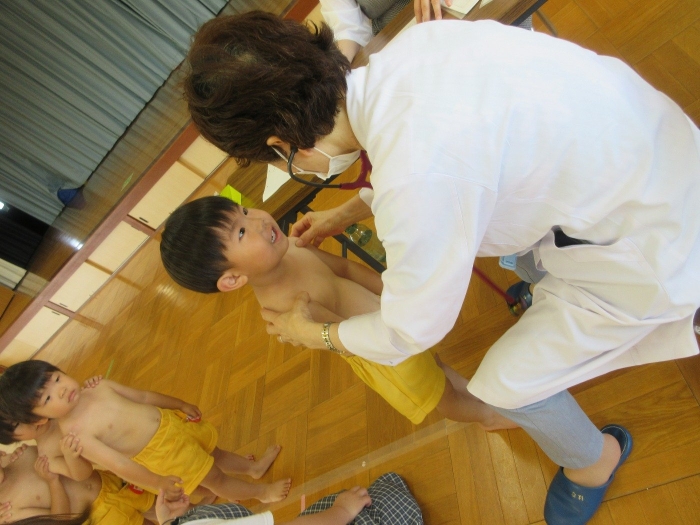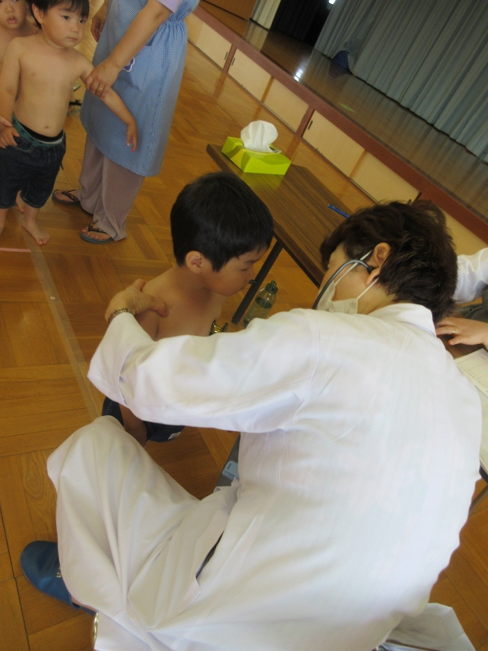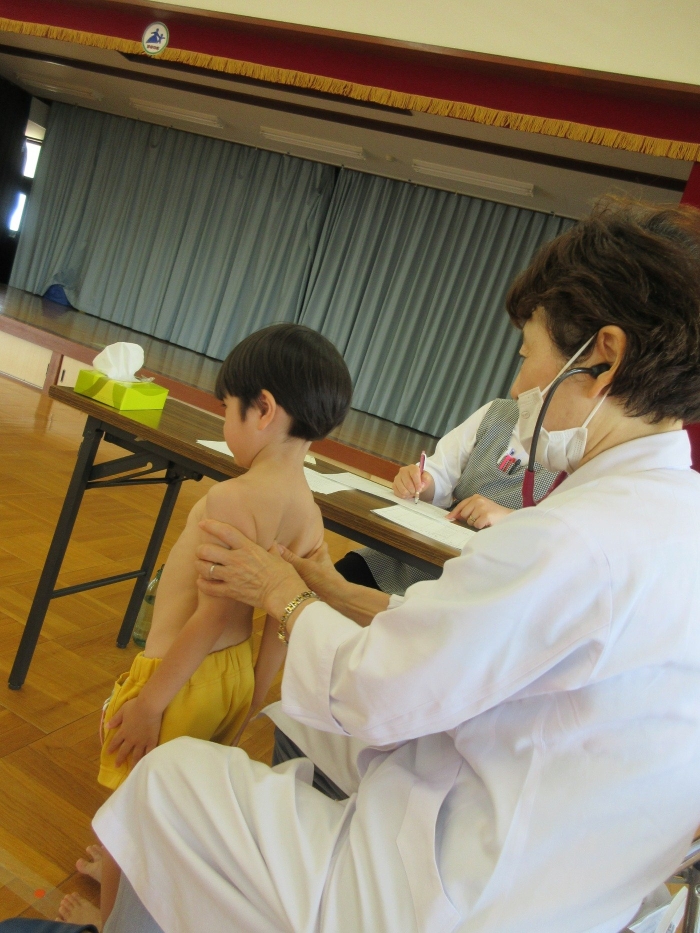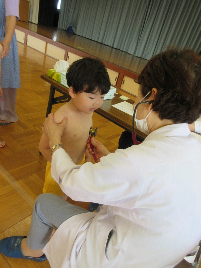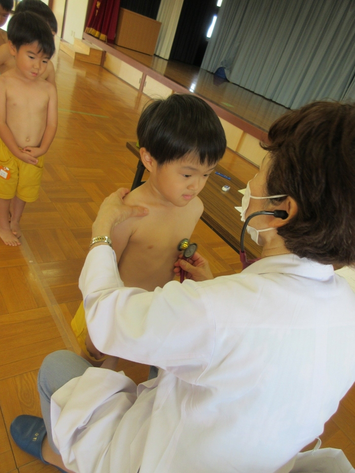 保育室で上服を脱いで、内科検診の準備をしました。うさぎさんや年少さんも一生懸命自分で洋服を脱いでいました!お部屋で約束事やどんなことをするのかの話を聞いて、いざ出発!!年中さんや年長さんは、お医者さんに自分の名前をしっかり伝えていましたよ😀初めて遊戯室に入るうさぎさん・・!なんと、みんな上手に汽車になって並び、落ち着いて内科検診を受けることができていました😄先生たちがびっくり!!年少の子どもたちも、緊張しながらも名前を伝えて挨拶する姿が見られました!!みんなよく頑張りました👏