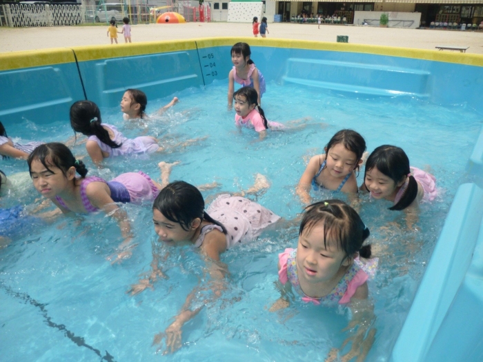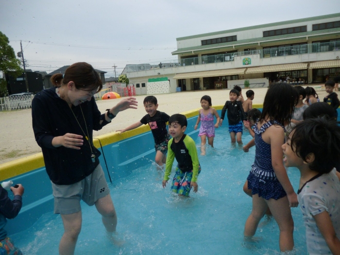 いよいよプール開きです!年長さんはさっそくプールに入りました☆彡