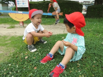 いつもとは違う遊具に大はしゃぎだったり、シロツメクサを見つけお家の方へのお土産にしたり、みんなの楽しそうな笑顔に先生たちは癒されました💓