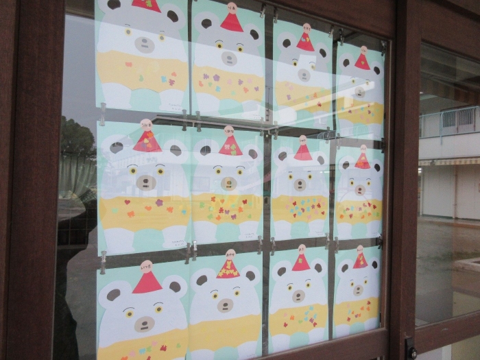 毎日2~3個好きなパーツを選んで、しろくまのパンツか帽子にのりをちょん付けして貼っていきます。