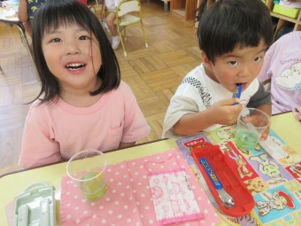 また、七夕にちなんで前日に初めてのおやつ作りをし、七夕フルーツポンチを作りました!!
