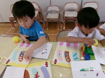 はさみの持ち方と手を添える位置を確認して、いざ実践!!``チョキン‘‘``チョキン‘‘``チョキン‘‘と3、4回連続で上手に切ることができていましたよ♡