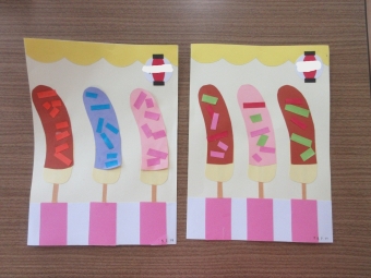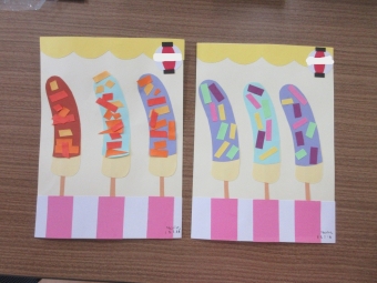 7月の毎日製作は夏休みが近いこともあり、お祭りの屋台風な台紙に「チョコバナナ🍌」を作りました☆