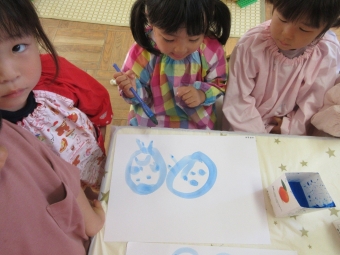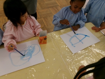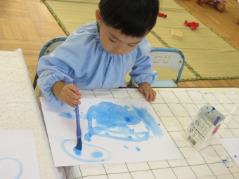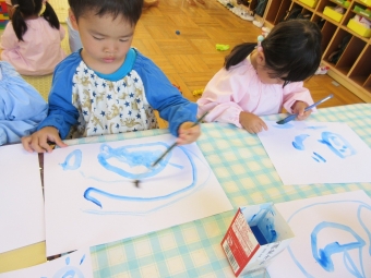 クレヨンとは違い、柔らかい感触に不思議そうな表情も浮かべながら、「顔描いたよ!」「うさぎが描けたよ!」と自由に楽しんで描けました!😊