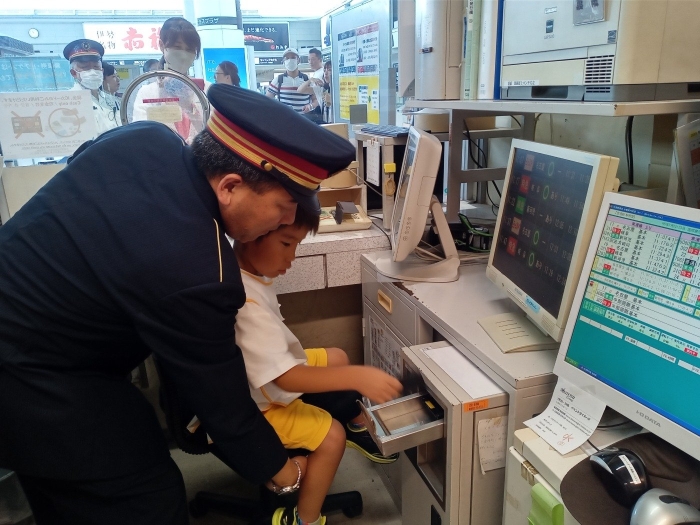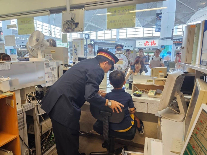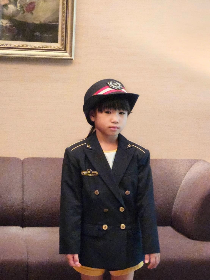 セントレアホテルでは電車の塗り絵やクラフト、キティルームの見学や駅員さんの制服を着させてもらったりしました。