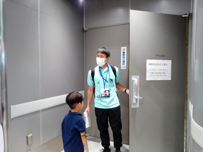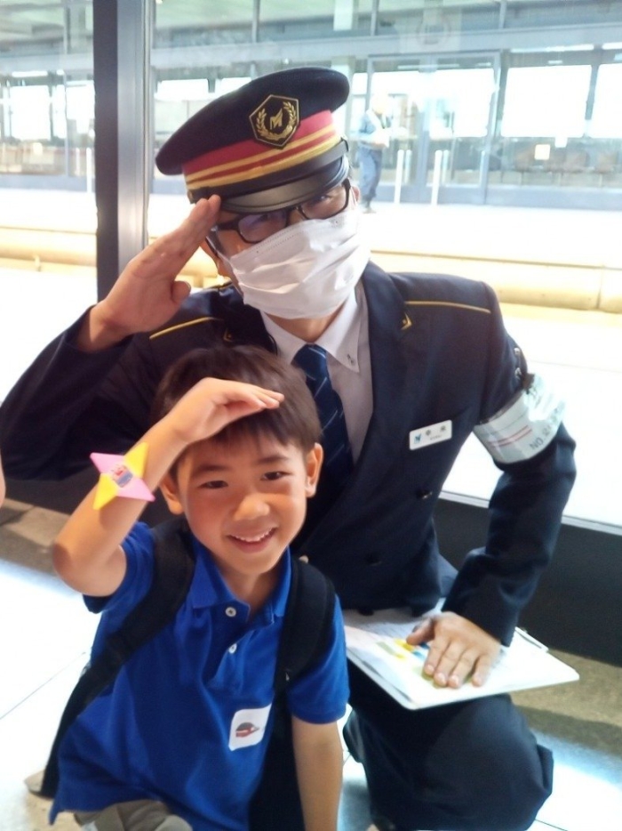 名鉄学園3園合同企画で、保護者の方とお子さま21組でミュースカイに乗ってセントレア空港まで行ってきました。22日は忍者の日、ということで、駅につくと忍者がお出迎え。忍者体操を教えてもらい、一緒に忍者体操をしました。そのあと、8両編成の電車を2つに切り離す「解放」という作業を見せてもらい、3グループに分かれ、普段は入れない駅長室や関係者以外立ち入り禁止のお部屋を見せていただいたり、切符発券体験をしたりしました。