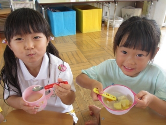 フルーツも一緒に固まっているのを見て