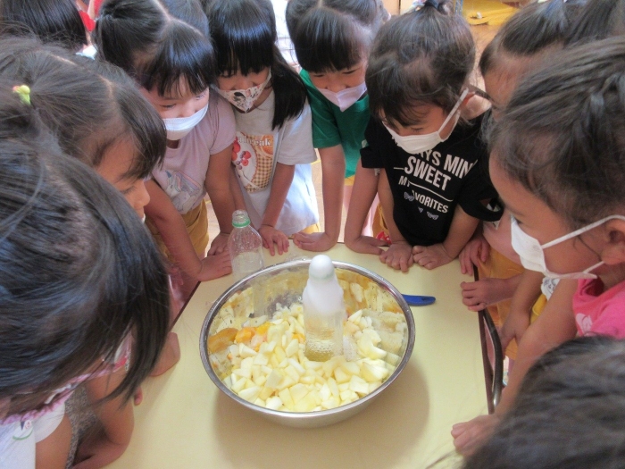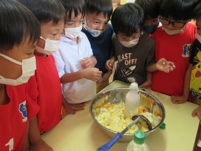 今月のおやつ作りは噴水フルーツポンチを作りました!