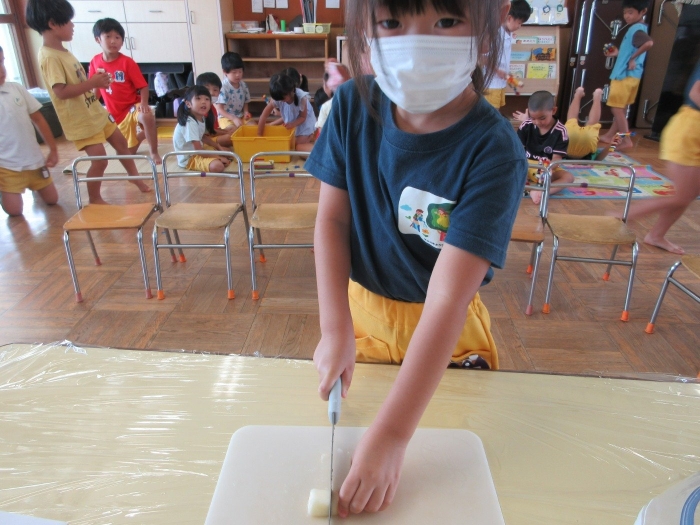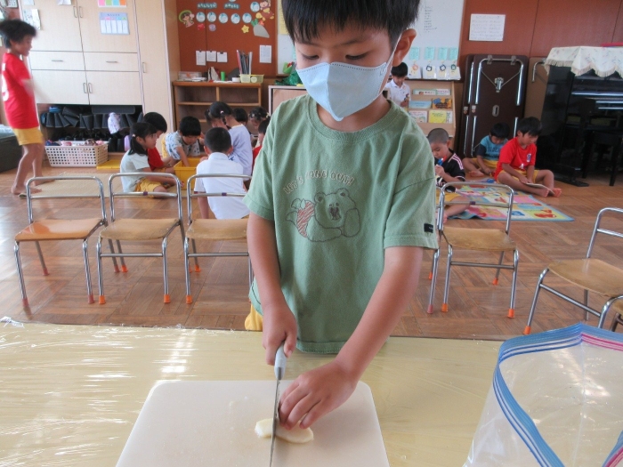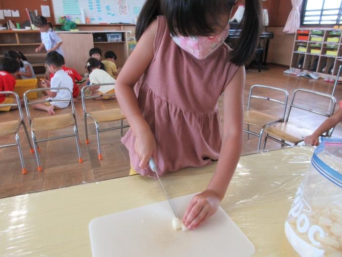 朝、登園した子からリンゴを切りました💞みんなもう包丁の使い方は完璧でした!