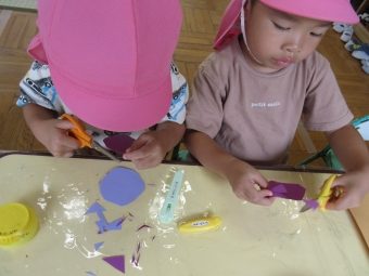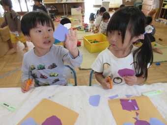 【年少クラス】はさみでブドウを作ったよ🍇