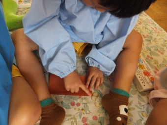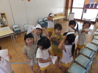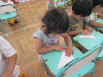 始めは、端と端を揃えることが難しく、もう一度きれいに合わせるようにチャレンジをする姿も見られましたが、楽しく上手に折ることができました😊✨