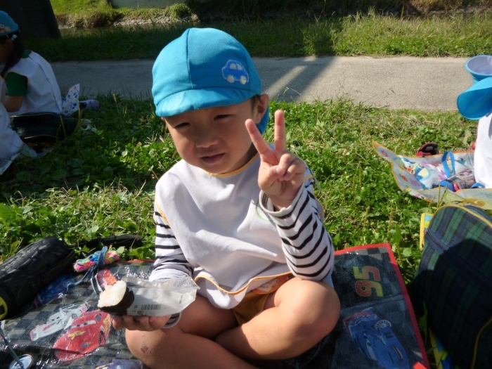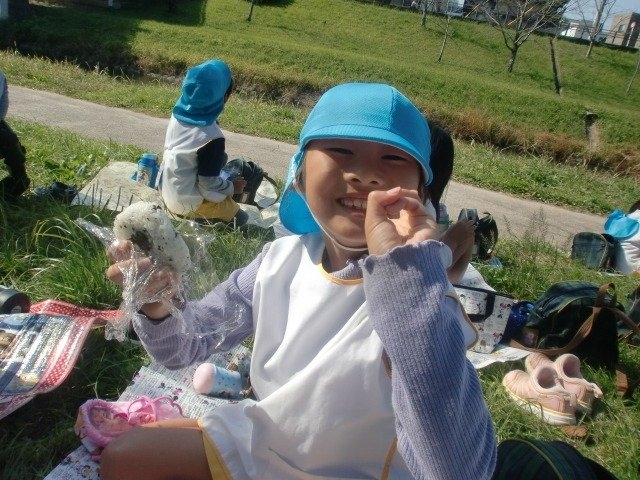 お家の人が作ってくれたおにぎりをみんな仲良くほおばって食べました!