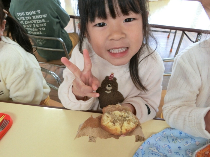 今日は、先日芋掘りで採った芋を使って、さつまいものマフィンを作りました❣