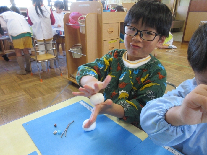 12月の製作で、年長は雪だるまのオブジェを作りました💓