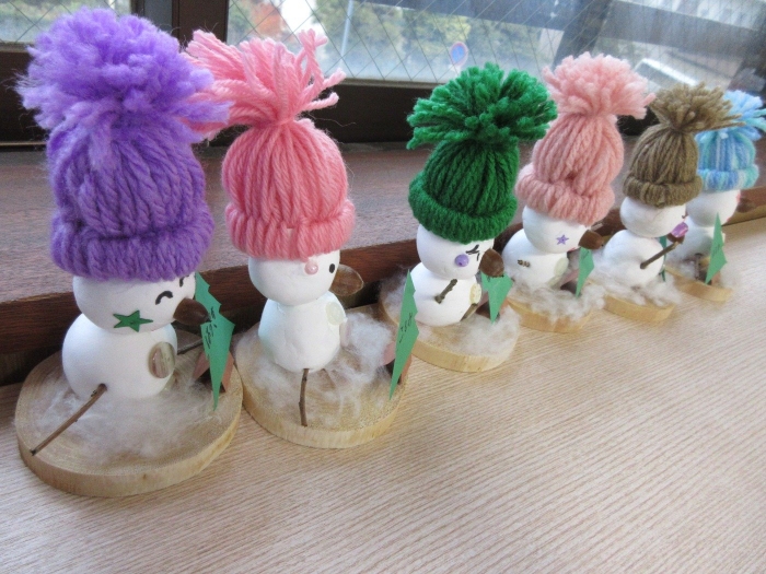 「うーん・・・どこにつけようかなぁ??」と悩みながらも、みんなボンドで上手に、素敵な雪だるまができました!!