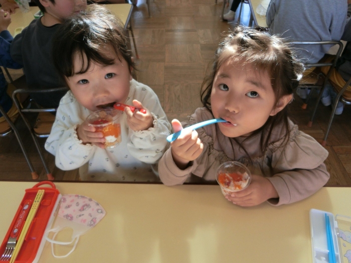 食べ始める前にはもちろん「いただきます!」と元気いっぱいに挨拶をしました☆