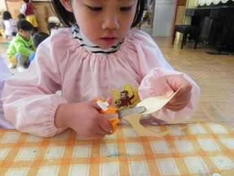 まずは、お顔をはさみで線に沿って丸く切りました!
