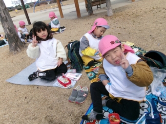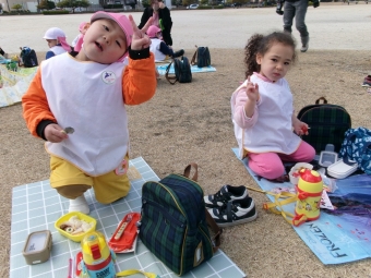 風が強くて、お弁当の中身やレジャーシートがビューン🌪️っと飛んでいきそうで大ピンチ❗な場面もありましたが、みんなでおしゃべりをしながら楽しくお弁当を食べることができました!