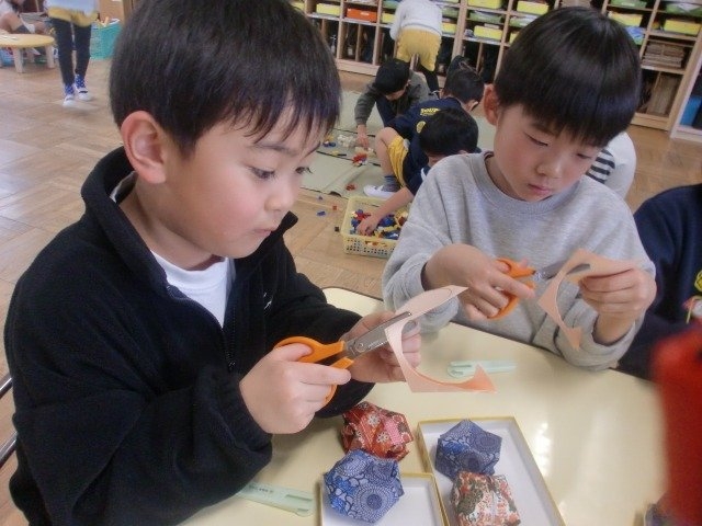 顔や髪の型をとって、はさみで切ったりもしましたが、さすが年長さん!あっという間に作っていました!!