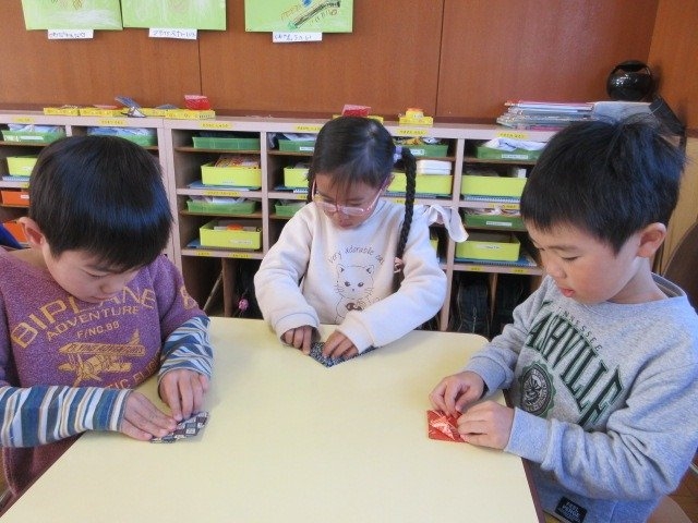 今回は、クルクル回るのがかわいいひな飾りで、和紙をふうせん折りにすることを挑戦しました💪