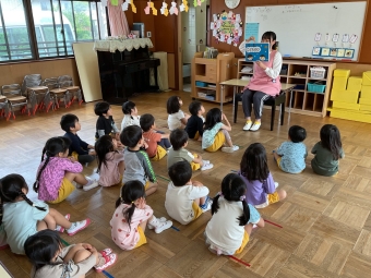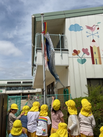 クラスごとに、こどもの日についてお話したり、絵本を読んだり、「こいのぼり」をみんなで歌ったり、幼稚園の玄関にある大きなこいのぼりを見に行ったりしました☺️