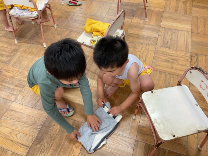 名札が見えるようにズボンを畳んだり、一生懸命行うことができました❣️