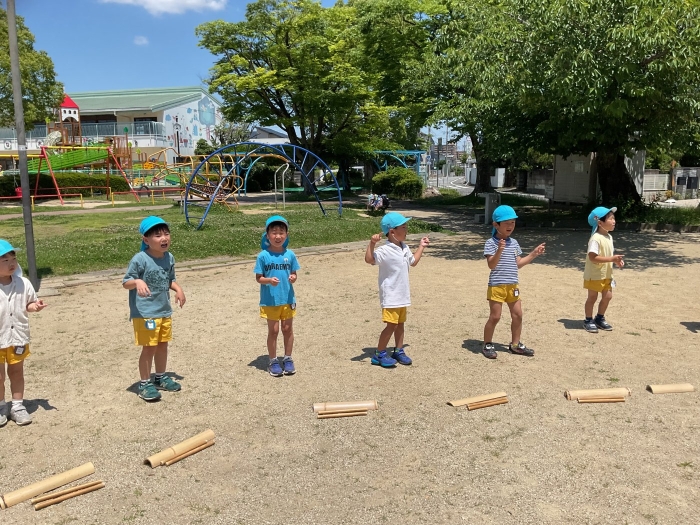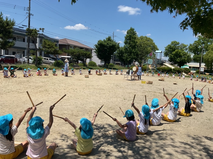年長さんだけの特別な“お囃子”大きな声でかけ声を言うよ!