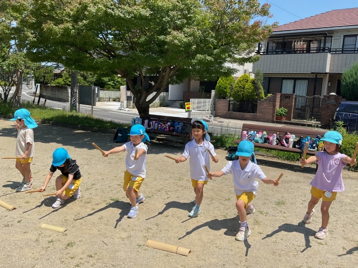 年長さんは、暑い中、水分をとりながら練習しています🔥
