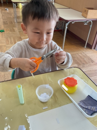 みんなの歯は20本!あるので、20回チョキチョキ✂️したら
