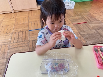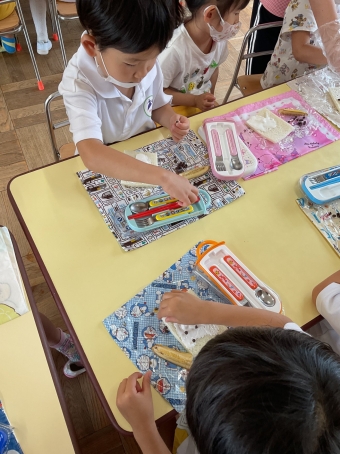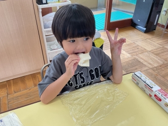 食パンの上に生クリームを絞って、スプーンでぬり広げました🥄