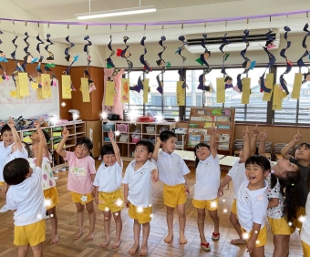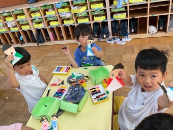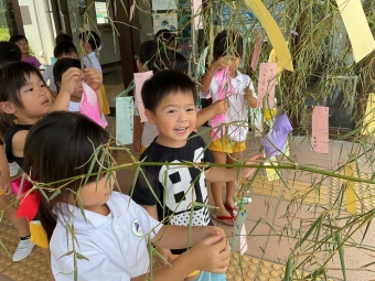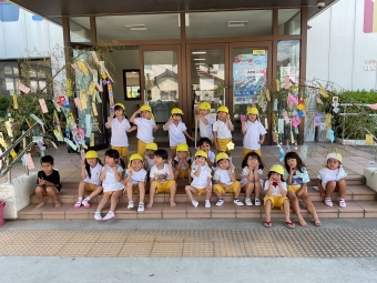 七夕の集いでは、七夕の絵本を見たり 歌を歌ったり 笹の前で写真を撮ったりしました!