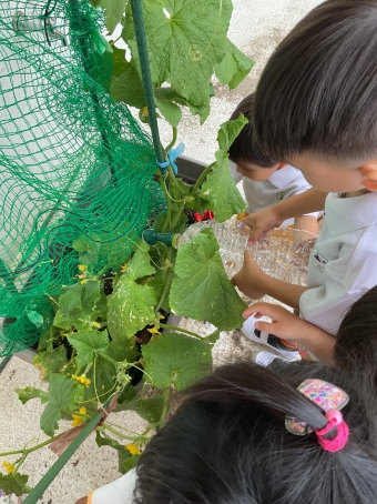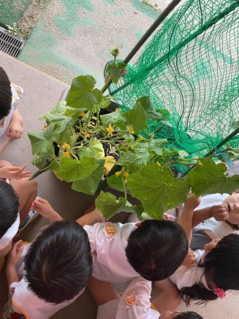 年少クラスで、夏の野菜〝きゅうり🥒”を育てました!