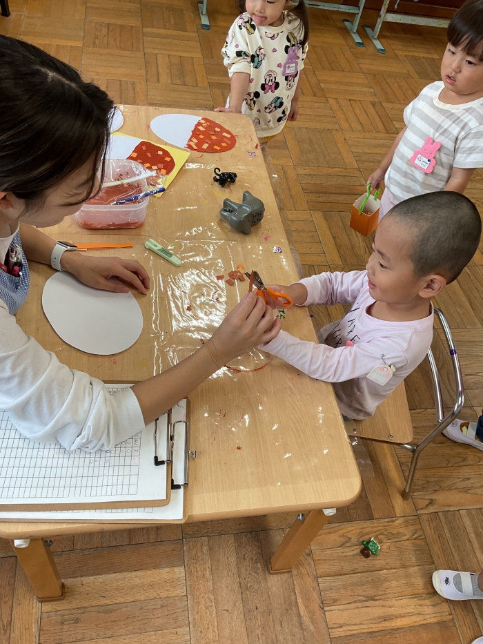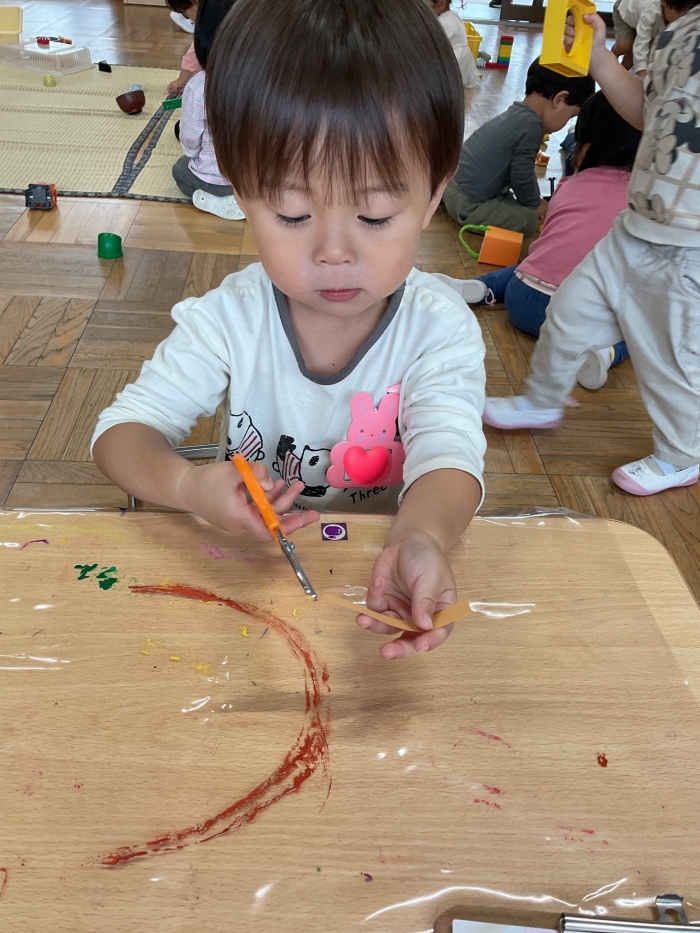 ハサミの正しい使い方を知り、製作を楽しみました😊