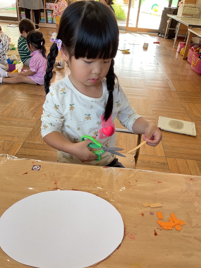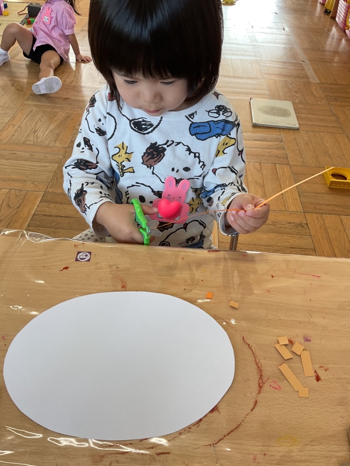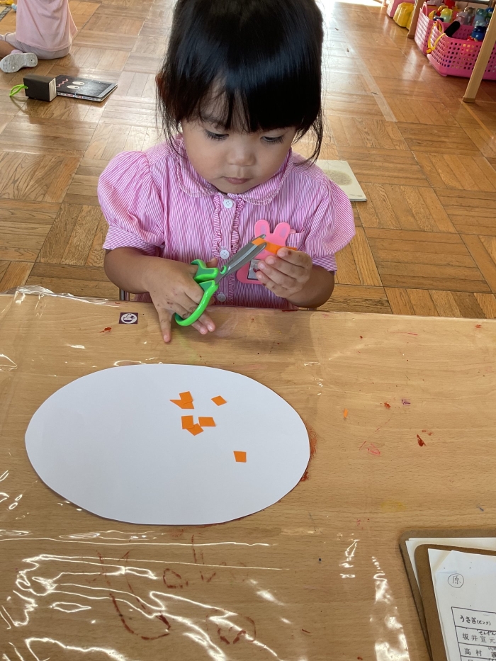 うさぎのくみでは今回初めてハサミを使い製作を行いました🎶✂️