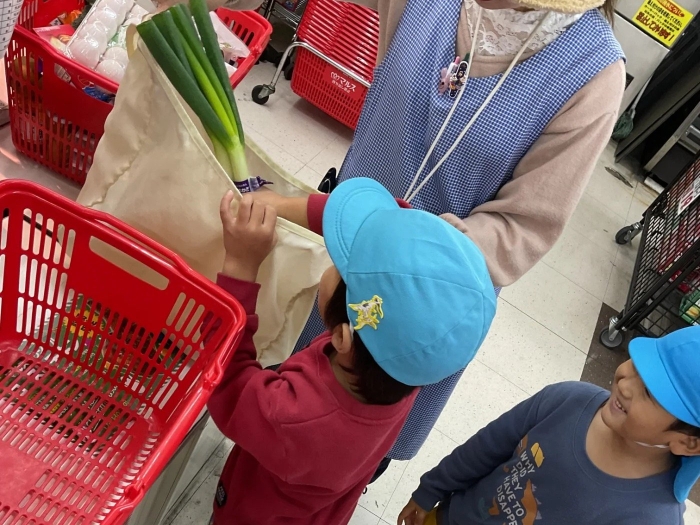 年長クラスは、自分たちで材料の買い物に行き、