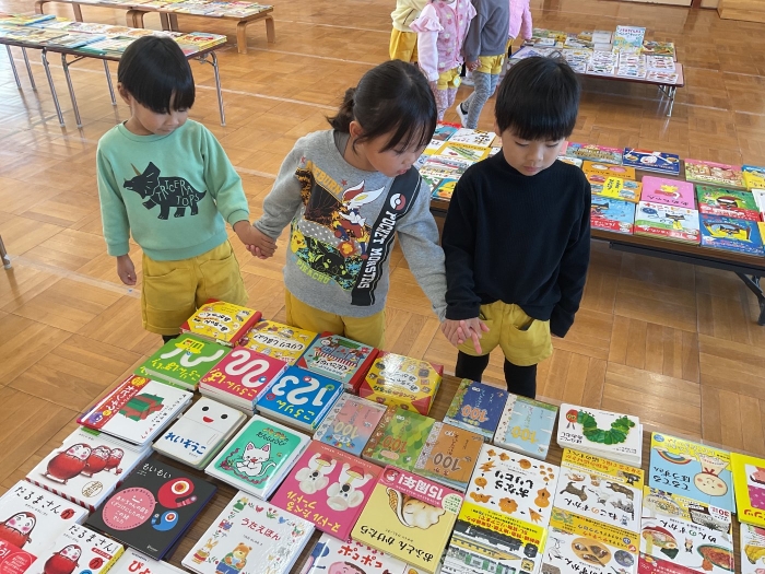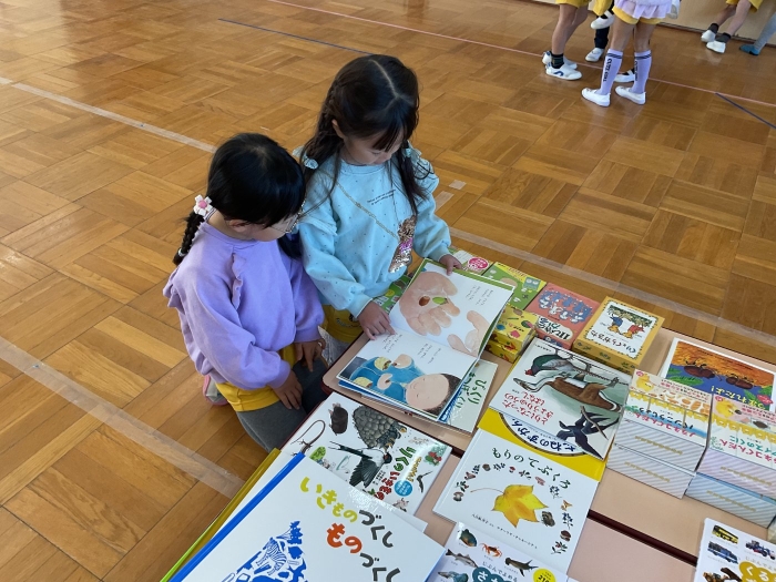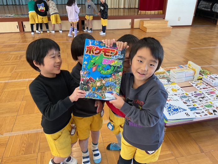 年長さんは本日、幼稚園で開かれたブックショップにて、卒業記念品として絵本の部屋に置いておける本を選びました📕😚