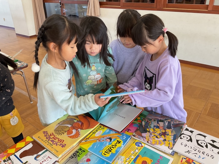 グループで好きな本を1冊選ぶのですが、「これはどう〜??」「この本って幼稚園にないよね!?」など、ページをめくりながらやりとりを楽しんでいました🥰💕