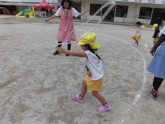 その後はお楽しみのゲーム!!今回は縄跳び取り組み表を頑張っていることとつなげて「縄跳びリレー」を行いました!日々練習している成果が出ている子がたくさんいましたよ♪