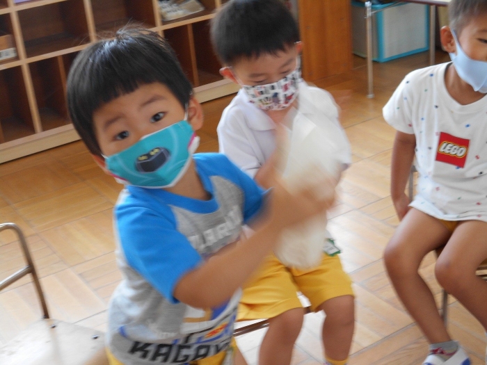 作り始める前に見本として先生達が力を合わせて作る姿を見たので、交代もとてもスムーズにできました☆