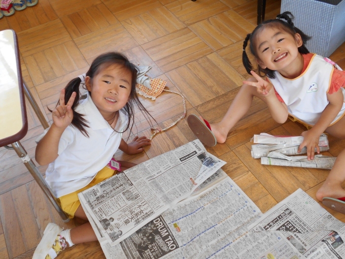 新聞紙で何を作ろうかな?