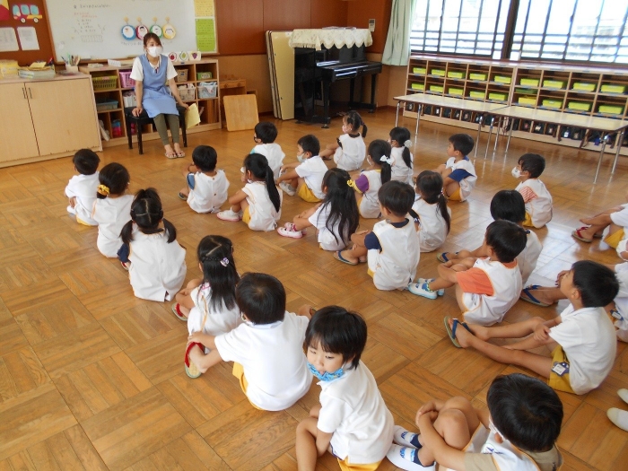 年中さんになって早くも約4か月が過ぎました☆初めは泣いていた子たちも今では元気いっぱい!にこにこしながら毎日幼稚園に来ることができるようになりました♪コロナ禍で我慢しなくてはいけないこともありましたが、子どもたちだけではなく、先生たちも楽しく1学期を過ごすことができました!