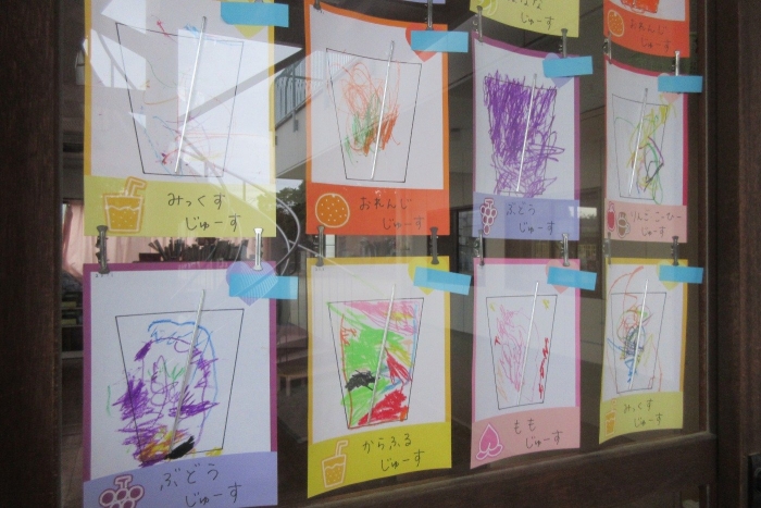 クレヨンでそれぞれ好きなジュースを描きました❤️