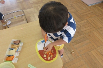 のりがついているカレーの上で好きな具材をチョキチョキ切っていきました😄✂