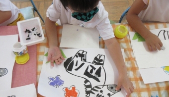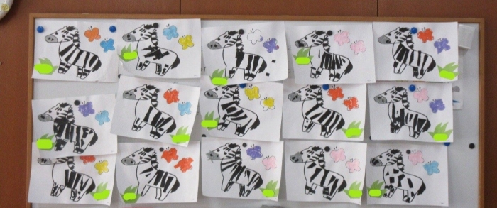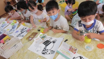 シマウマの縦じま模様は縦長にちぎったり、ちょうちょでは細かくちぎり空いているところを埋めていったりと、色々なちぎり方も経験しました!